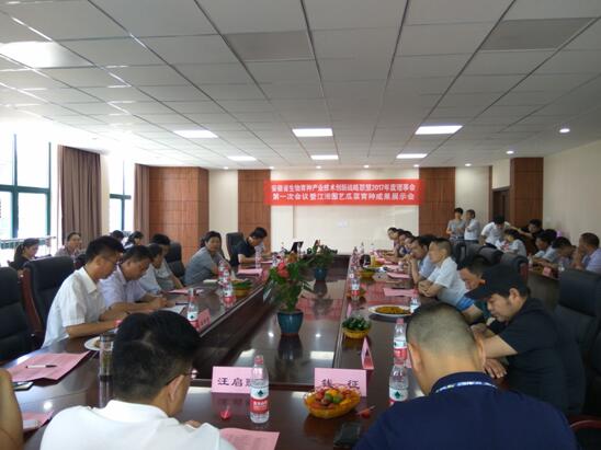 2017年6月17日,安徽省生物育種產(chǎn)業(yè)技術(shù)創(chuàng)新戰(zhàn)略聯(lián)盟(以下簡稱“聯(lián)盟”)2017年度理事會第一次會議在長豐縣召開。聯(lián)盟理事長、荃銀高科副董事長陳金節(jié)研究員,聯(lián)盟副理事長姚大年教授、羅志祥研究員、陳洪儉研究員、戴祖云研究員,以及聯(lián)盟成員單位代表等30余人參加會議。會議由聯(lián)盟秘書長、荃銀高科副總經(jīng)理張從合研究員主持。