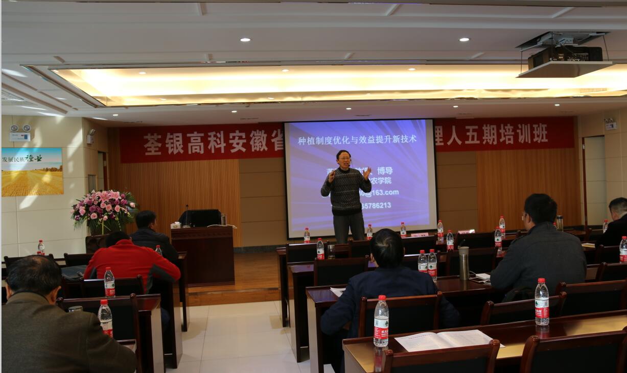 2017年11月27日,安徽省首屆農業(yè)職業(yè)經理人第五期培訓班在荃銀高科六樓多功能廳正式開課。來自全省各地的50位從事糧油種植的家庭農場主、農業(yè)合作社及農業(yè)企業(yè)負責人參加了培訓。