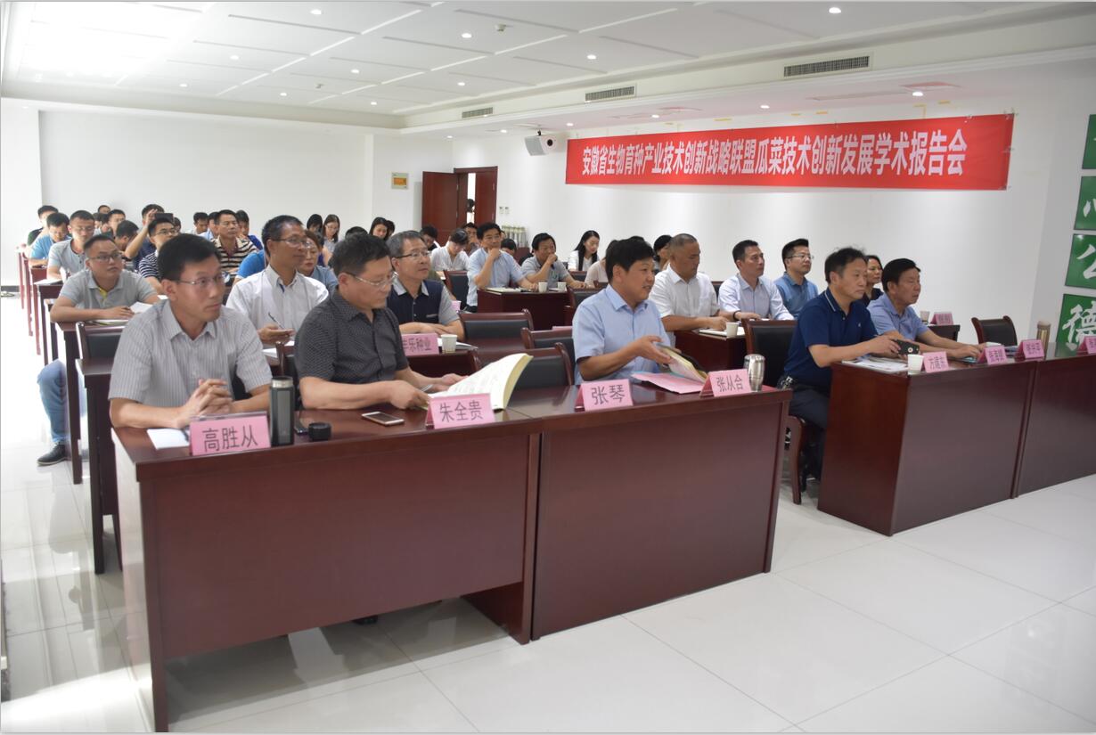 ??? 24日下午,安徽省生物育種產(chǎn)業(yè)技術(shù)創(chuàng)新戰(zhàn)略聯(lián)盟瓜菜技術(shù)創(chuàng)新發(fā)展學(xué)術(shù)報告會召開,合肥市科技局農(nóng)村與社會發(fā)展科技處處長方建東,安徽省蔬菜產(chǎn)業(yè)技術(shù)體系首席專家、國家西甜瓜產(chǎn)業(yè)技術(shù)體系合肥綜合試驗站站長張其安研究員,豐樂種業(yè)、徽大農(nóng)業(yè)等安徽省生物育種產(chǎn)業(yè)技術(shù)創(chuàng)新戰(zhàn)略聯(lián)盟成員及員工70余人參加了報告會。