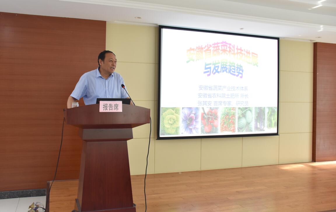 ??? 張其安研究員在會上作《安徽省蔬菜科技成就與發(fā)展趨勢的報告》,詳細(xì)講解了蔬菜育種關(guān)鍵技術(shù)重要進(jìn)展及未來發(fā)展方向,聯(lián)盟成員就相關(guān)研究方向進(jìn)行了現(xiàn)場問答與討論。