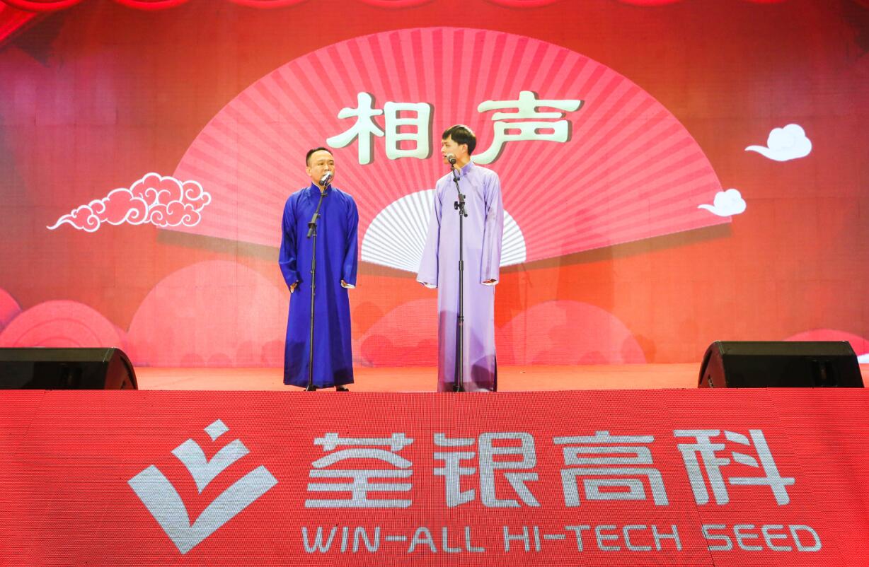 ? ? 聯(lián)歡會以喜慶祥和的歌舞表演《在希望的田野上》拉開序幕,科技公司的《街武》,將武術(shù)和街舞結(jié)合,剛?cè)岵朱趴?;玉米公司的相聲《套牌》,道盡了一線種子銷售人員的不易;小品《西游記之女兒國2》詼諧幽默,令人捧腹大笑;詩朗誦《我愛祖國,我愛荃銀》殷情并茂,音詩畫《我和我的祖國》大氣恢弘,京歌《我是中國人》激情澎湃,荃銀人用自己的方式歌頌祖國,祝福荃銀。期間,中化農(nóng)業(yè)黨群工作部姚雁主任傾情獻唱《我把太陽迎進祖國》以及黃梅戲選段,獲得掌聲陣陣。整場晚會形式多樣,精彩紛呈,大家載歌載舞,盡顯風采魅力,現(xiàn)場還有互動抽獎,獎品豐厚,引得喝彩不斷。今年是荃銀高科上市十周年,加入中化農(nóng)業(yè)一周年,公司經(jīng)營班子成員及子(分)公司領(lǐng)導在張琴總經(jīng)理帶領(lǐng)下齊聲高唱《今天是你的生日》,為祖國、為荃銀送上由衷的祝福。晚會在高亢的歌聲中圓滿落下帷幕。