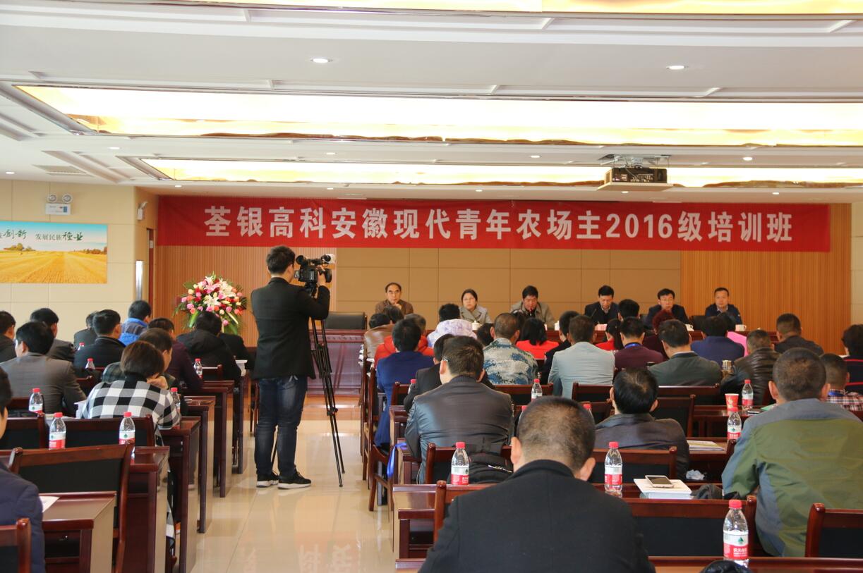 2017年3月27日上午,荃銀高科安徽現(xiàn)代青年農(nóng)場(chǎng)主2016級(jí)培訓(xùn)班開(kāi)班儀式在肥舉行。合肥市農(nóng)委主任夏倫平、共青團(tuán)安徽省委農(nóng)村工作部副部長(zhǎng)陳永剛、安徽農(nóng)業(yè)大學(xué)農(nóng)學(xué)院黨委副書(shū)記鄢高翔、荃銀高科董事長(zhǎng)張琴等領(lǐng)導(dǎo)出席開(kāi)班儀式。